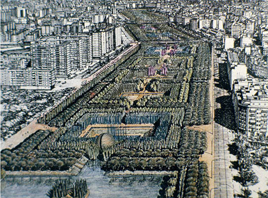 Para entonces, Bofill había cambiado de registro y se alineaba en la ola estilística de la posmodernidad. En Francia estaba triunfando con su propuesta de un neoclasicismo prefabricado. Era monumental, impresionaba a los políticos, comprensible para el público, y barato. Para los arquitectos, todo lo contrario, aquello era un bluf sin rigor. Su proyecto para el Jardín del Turia se comparaba a un trampantojo en tecnicolor que, desde el primer día, iba a generar muchos problemas. Para empezar, Bofill pidió la intervención de una potente ingeniería, la de Ove Arup –la mejor de Europa, carísima–, con la que garantizar la solvencia del proyecto constructivo del jardín. En el Ayuntamiento se escandalizaron.