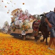 Es para muchos el momento más divertido de la Fira, gracias también a las carrozas, diseñadas, realizadas y decoradas con mimo por artistas y artesanos con millones de flores y que, mediante diseños temáticos, compiten por ser favoritas año tras año.