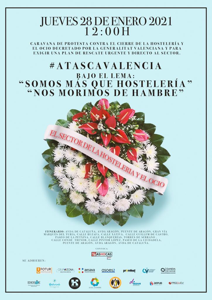 Los convocantes tienen previsto depositar, ante el Palau de la Generalitat, una corona de flores como símbolo de la muerte del sector. Además, allí se leerá también un manifiesto exigiendo ayudas directas y un plan de rescate a la hostelería.