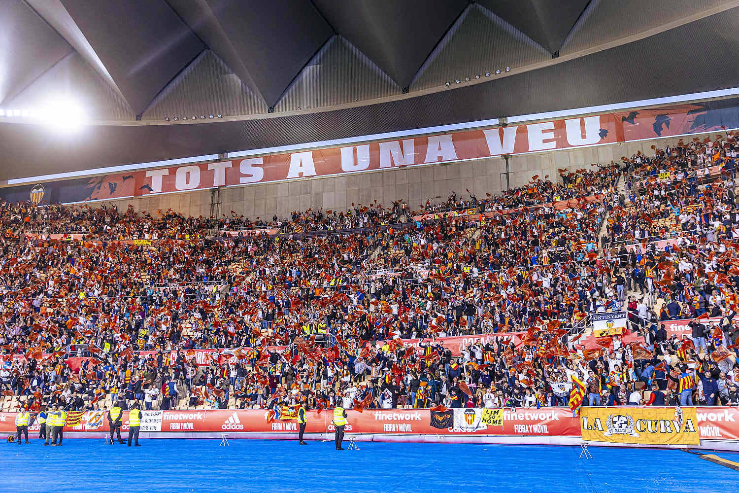 La imponente pancarta del valencianismo en La Cartuja de Sevilla.