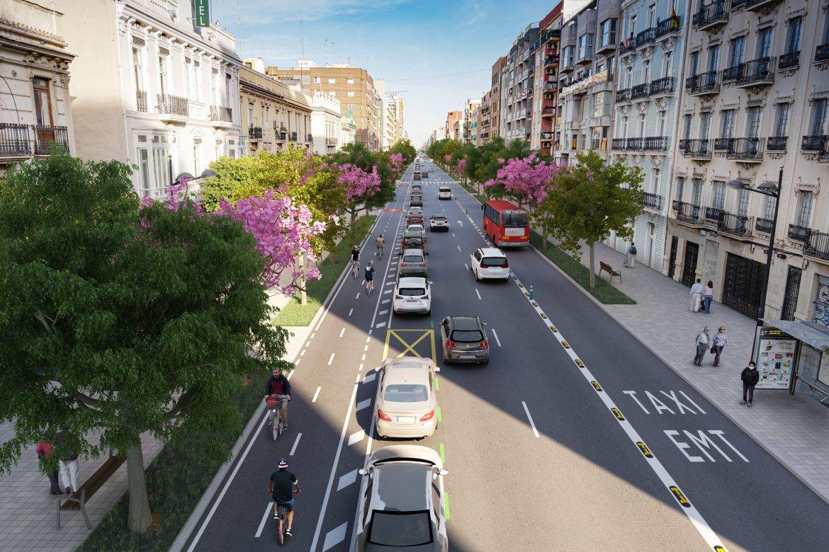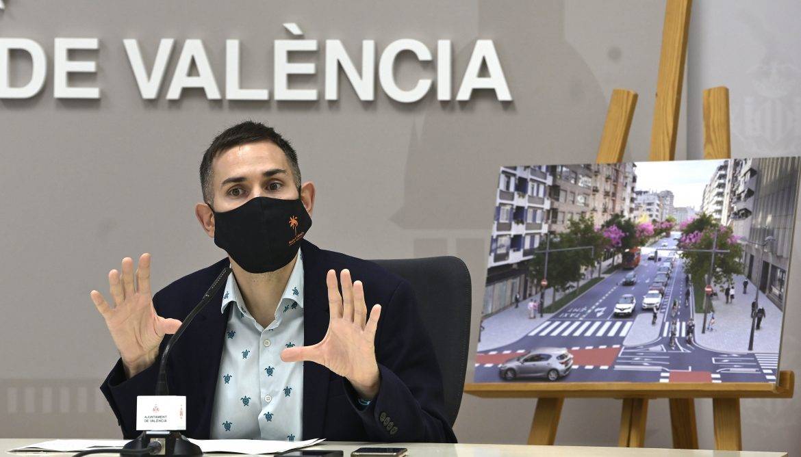 El vicealcalde ha enumerado los beneficios de renaturalizar la vía que atraviesa los Camins al Grau y los Poblats Marítims: tiene efecto regulador de la temperatura, proporciona sombra a peatones y ciclistas, retiene la contaminación, purifica el aire, ofrece refugio a la fauna urbana, y aporta naturalidad y belleza.