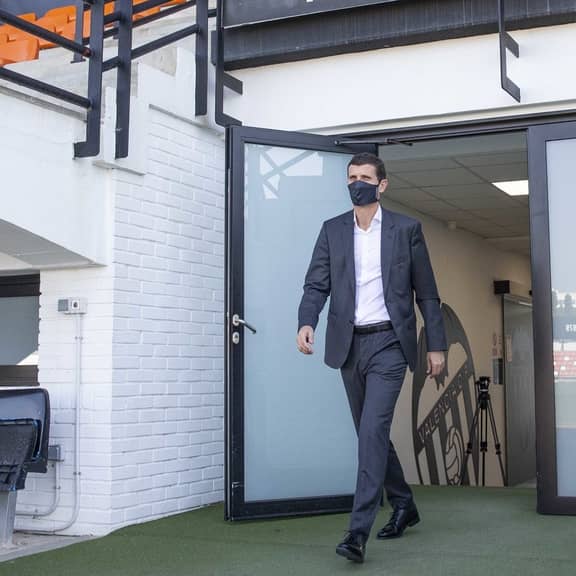 El nue­vo entre­na­dor del Valen­cia CF, Javi Gra­cia, en la ciu­dad depor­ti­va de Pater­na. Foto: valenciacf.com