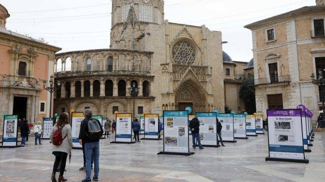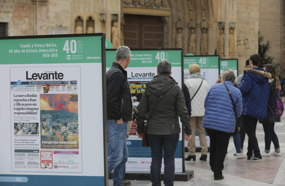 El grupo Prensa Ibérica cumple cuarenta años y para celebrarlo ha inaugurado una exposición en La plaza de la Virgen que recoge los hechos que han sido primera página estos años a través de 60 portadas.