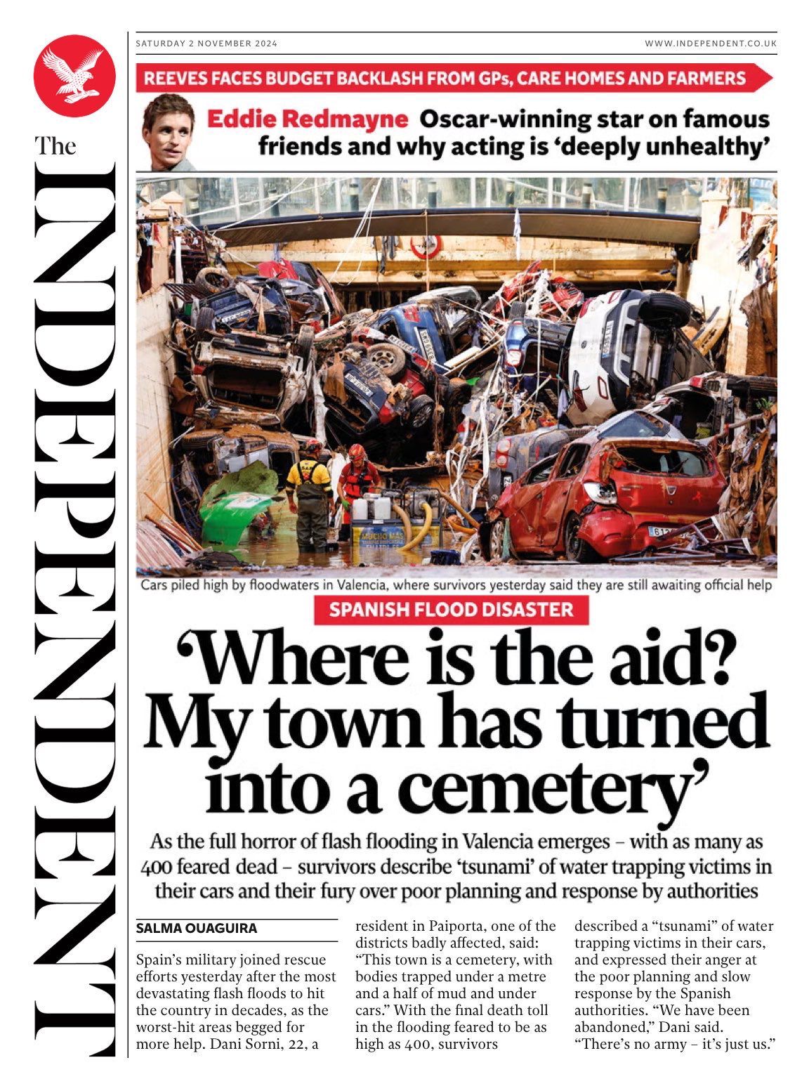 Las inundaciones en la provincia de València son portada en los principales diarios internacionales.