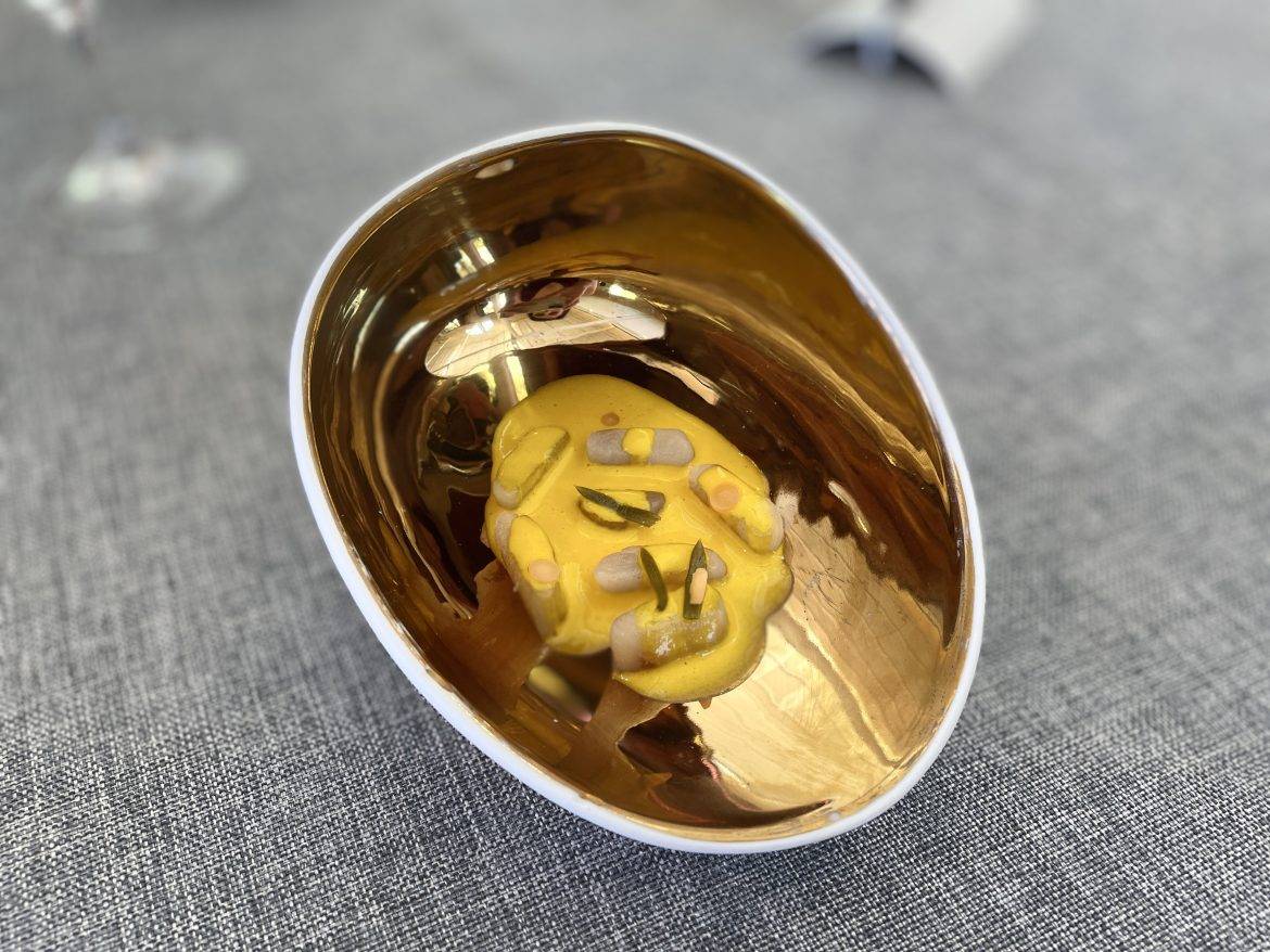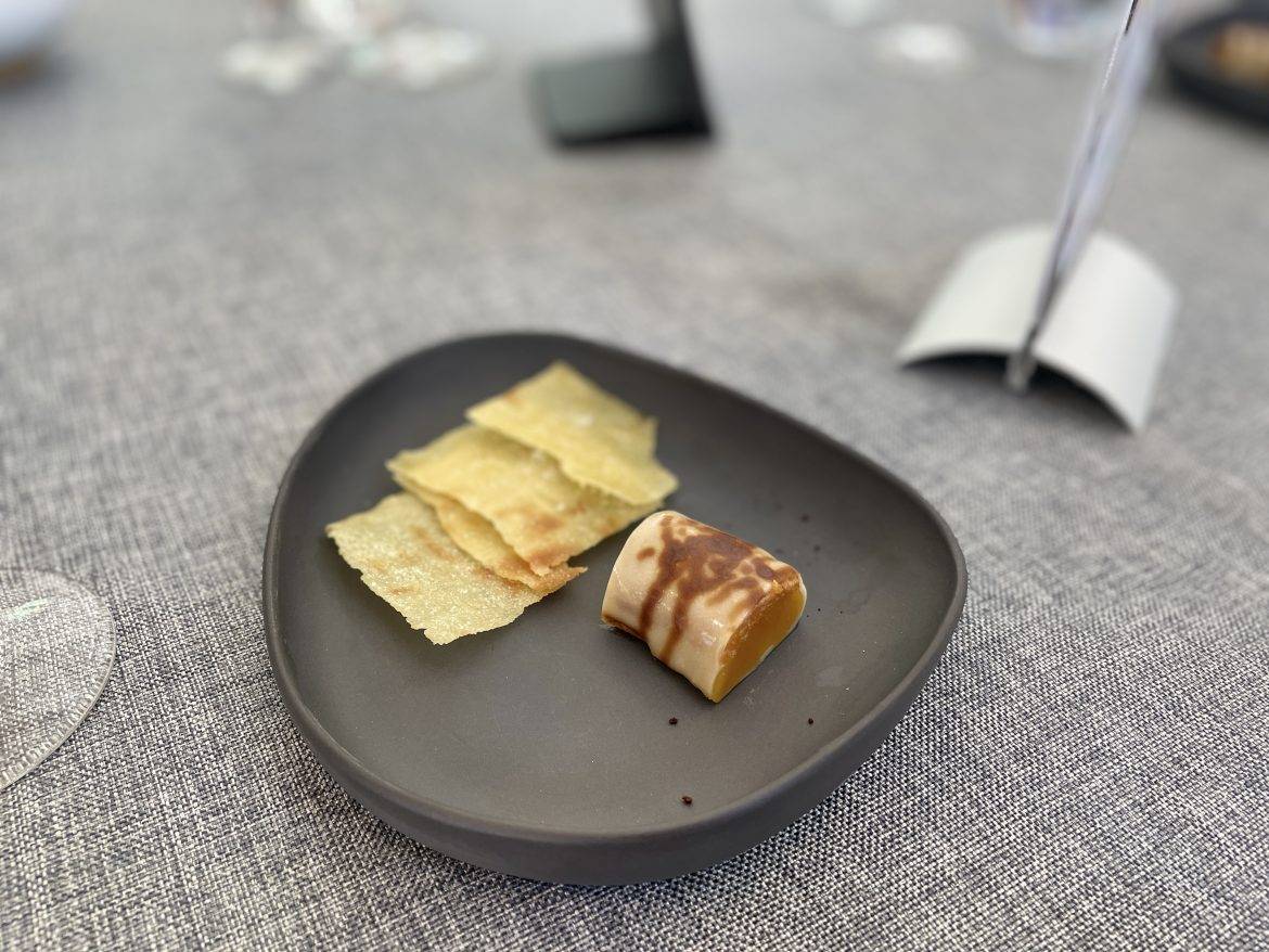 “Tam­bién hemos degus­ta­do el tra­di­cio­nal cal­de­ro de dora­da y lan­gos­tino del Mar Menor”, expli­ca el chef. Algu­nos peque­ños boca­dos que tam­bién han pro­ba­do los invi­ta­dos han sido el mar­mi­ta­co de morri­llo de atún rojo sobre una hoja de shi­so en for­ma de taco o un molle­te de cabri­to lechal relleno de cha­pi­nas (molle­jas).