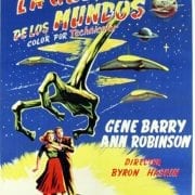 La guerra de los mundos, Byron Haskin, 1953. Es la que más me gusta. La vi en el cine Avenida de Valencia con la edad precisa para que me apasionara tanto. Tendría yo unos 10 años. Es una versión con estética de tebeo, colores vivos y un efectivo diseño naif de los marcianitos y sus naves invasoras. Mi cartelera de mano preferida –me costó cara en una feria de coleccionistas- es una que reproduce, troquelada, el perfil de los platillos volantes de esta película que ya tiene 68 años de antigüedad.