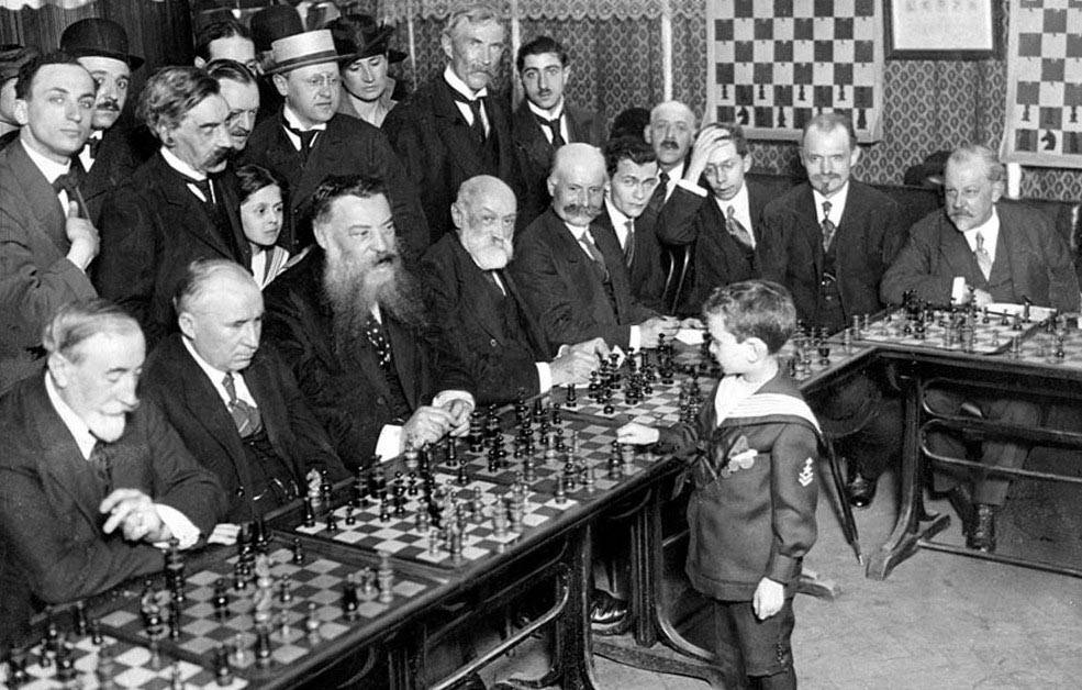 De este relato me llama la atención que Chaplin describiese el rostro de Reshevsky como una carita “que se ponía roja y después blanca”. Yo creo que para el campeón del mundo infantil aquellas simultáneas debían ser pura rutina. Una exhibición ciertamente espectacular para los profanos, pero sin apenas mérito ante los ojos de jugadores experimentados. Desde fuera, impresiona. Desde dentro, te deja indiferente. En el ajedrez lo difícil es jugar muy bien, no ganarle a unas decenas de primerizos ajedrecistas cargados de años e incompetencia.