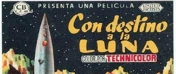 Lunes 8‑XI. Con destino a la luna (Irving Pichel, 1950). Se estrenó en España en 1953. Yo la vería en un cine de barrio (¿el Mundial, el Iberia?) o tal vez de reestreno (¿el Coliseum, el Tyris, el Goya?) seguramente en 1954. Impresión profunda con sus imágenes. Ahora la veo y añoro y envidio y al mismo tiempo me irrita y subleva aquella ingenuidad mía como espectador ansioso de experiencias fuertes. Con destino a la luna cuenta la fantástica historia estadounidense de un empresario, un general retirado y un investigador aeroespacial que unen sus fuerzas para poner en órbita un cohete propulsado con energía atómica. El cohete lo construyen en el desierto de Mojave (California sur). Malvados agentes de una potencia extranjera (¡faltaría más!) intentan sabotear el proyecto. Finalmente, el cohete despega con destino a la Luna. A la salida del cine pensé: “Los terrícolas nunca llegaremos a la Luna”. La realidad me desmintió década y media después.