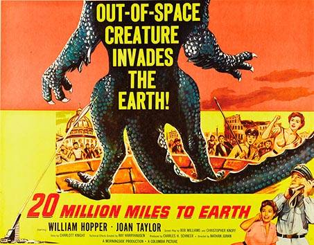 Viernes 13-XI. El monstruo de otro planeta (Nathan Juran, 1957). Un cohete espacial del ejército norteamericano (¡por supuesto!) regresa de una exploración a Venus y se estrella en el mar de la costa siciliana. De los restos del cohete se recupera un recipiente que guarda una masa gelatinosa de la que surge una extraña criatura que dobla su tamaño cada vez que se hace de noche (una hermosa idea). Imaginativa mezcla de King Kong (Merian C. Cooper y Ernest B. Schoedsack, 1933) y El experimento del doctor Quatermass (Val Guest, 1955). Creo que vi la película en la tele en los primeros años sesenta (¿1961, en el bar Perelló, mientras mi padre jugaba al ajedrez?). El “monstruo” está diseñado por el gran Ray Harryhausen (1920–2013). En mi adolescencia el monstruo me daba miedo y asco. Quería que acabasen con él cuánto antes (cosa que ocurre al final de la película ¡en el Coliseo de Roma!). Ahora me apena su destrucción porque, aparte de ser distinto a los humanos, en dicho “monstruo” no hay agresividad alguna. Lo único que hace es defenderse del hostigamiento humano.