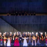 Tras finalizar la representación, la platea en pie ha obsequiado al elenco, el equipo creativo y artístico, el Cor de la Generalitat y a la Orquestra de la Comunitat Valenciana con una ovación de más de siete minutos.