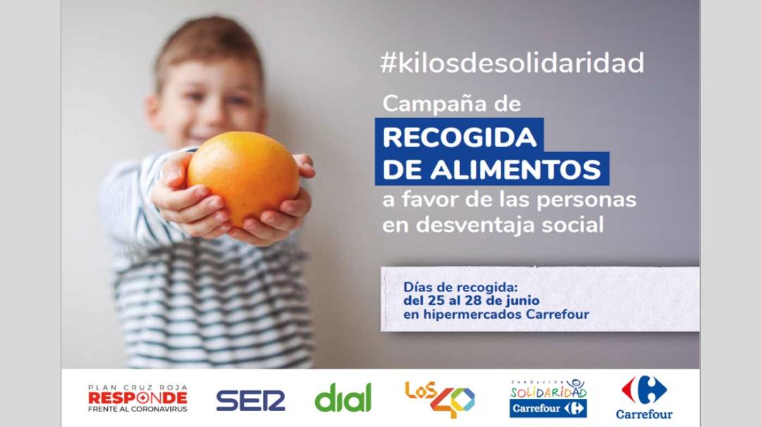 Una campaña de recogida que se realizará entre el 25 y 28 de junio en más de 200 hipermercados Carrefour de toda España y contará con la participación de miles de personas voluntarias del Plan Cruz Roja RESPONDE y de Fundación Solidaridad Carrefour. En ella, además de pedir la donación de alimentos, grandes figuras de la radio se involucrarán activamente en la acción y actuarán también como voluntarios durante los días en que se realice la campaña de recogida de alimentos. Los principales comunicadores de la Cadena SER, LOS 40 y Dial realizarán programas y conexiones especiales in situ para movilizar a sus respectivas audiencias y a los ciudadanos en general.