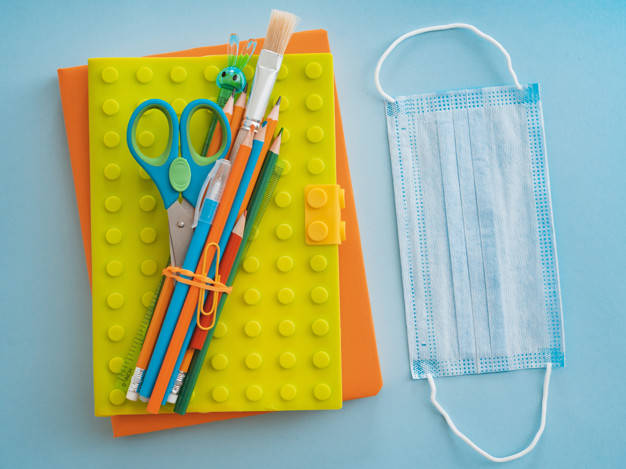 Úti­les esco­la­res y mas­ca­ri­lla, esen­cia­les en el nue­vo cur­so esco­lar.