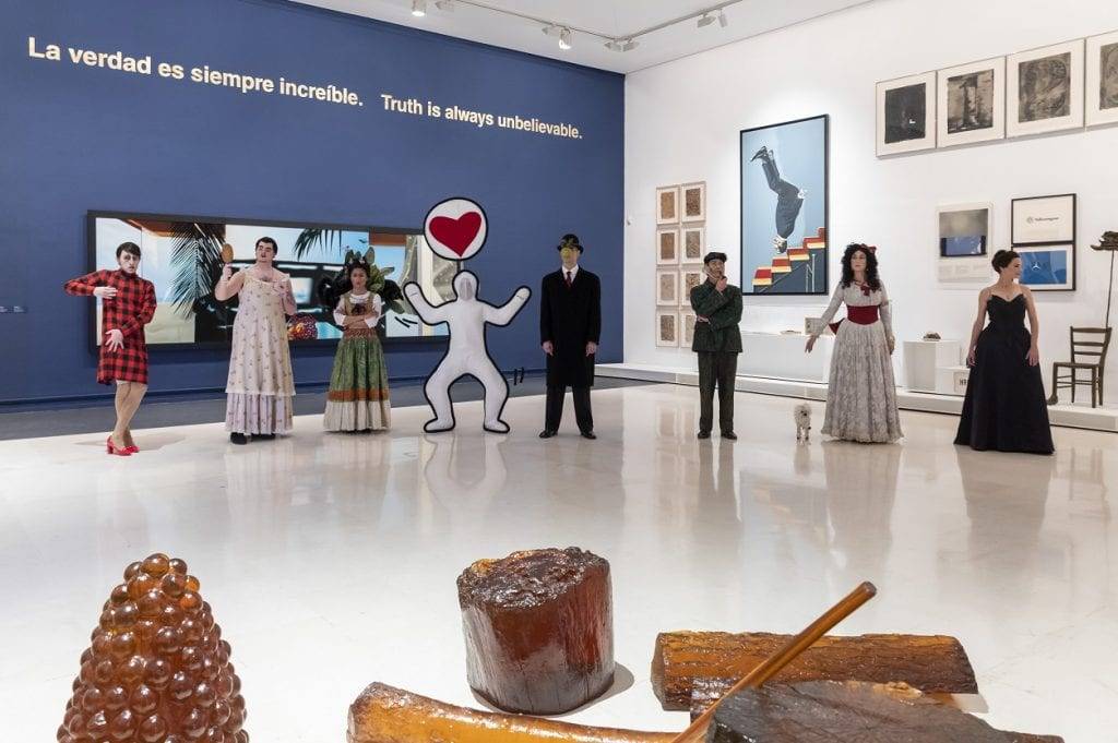 El séquito, integrado por Melancolía, de Botero; Retrato de la periodista Sylvia von Harden, de Dix; La Duquesa de Alba, de Goya; los autorretratos de Frida Kahlo y Vincent Van Gogh; Dancing man with heart, de Keith Haring; El hijo del hombre, de Magritte, y Madame Gautreau, de Sargent, regresará esta tarde a los ensayos en el Palau de les Arts.