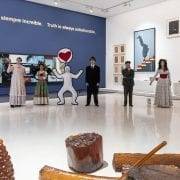 Tras un breve recorrido por el vestíbulo del edificio, las ocho pinturas han mostrado su particular interés por la exposición Tiempos convulsos, en las galerías 4 y 5 del edificio, que reúne un importante número de obras de la colección del IVAM de diferentes artistas.