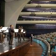 Minuto de silencio el Les Arts por los fallecidos a causa de la pandemia, ocasionada por el COVID-19, momentos antes de dar comienzo el primer concierto que se celebra en el Palau de Les Arts Reina Sofía. Un concierto homenaje a los sanitarios que han luchado contra el coronavirus en esta comunidad. @artsfotografia