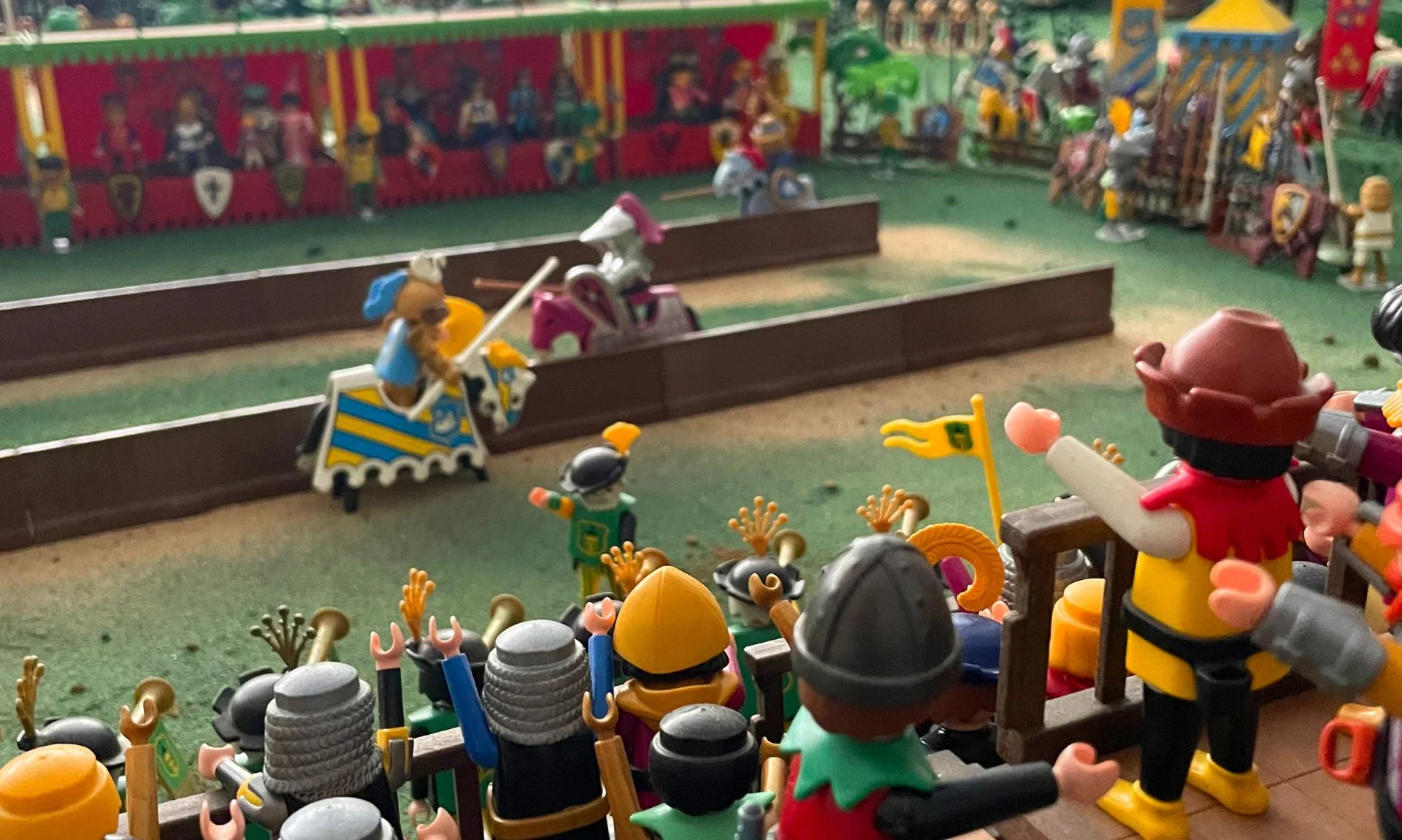 El primer diorama, de más de 120 m², recrea la época medieval con todo lujo de detalles, incluyendo escenas de batallas, castillos, torneos y mercados. Los visitantes podrán disfrutar de una visión histórica de esta época, en la que los conocidos clicks de Playmobil cobran vida en una espectacular puesta en escena. La Edad Media abarcó casi diez siglos, entre la Antigüedad y el Renacimiento. Para muchos historiadores se inicia con la caída del Imperio romano de Occidente y termina en 1453 con la conquista de Constantinopla a manos de los otomanos, para otros termina con el descubrimiento de América en 1492. Si hasta el año mil, la sociedad se dividía en dos estamentos (los que ostentaban el poder, y los demás), después aparecieron otros grupos importantes como el clero, los guerreros y los campesinos, que trabajaban la tierra para subsistir y mantener el estatus del resto.