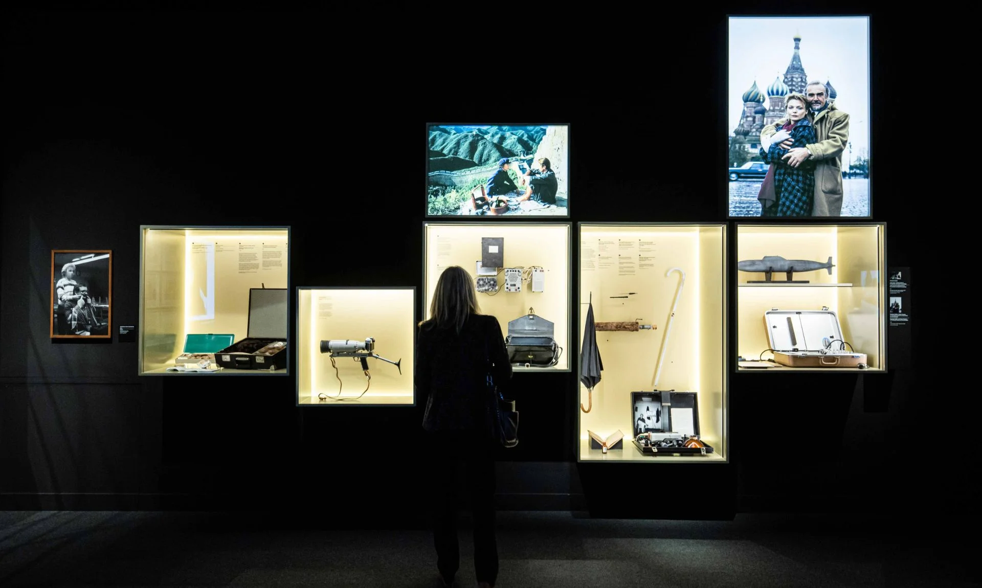 A través de las figuras de espías emblemáticos —desde Mata Hari hasta Carrie Mathison, pasando por James Bond y Edward Snowden—, la exposición se infiltra en las relaciones entre cine y espionaje durante más de 100 años. La muestra recupera el papel de la mujer espía, más allá del estereotipo del sexpionaje ampliamente explotado en el mundo del cine. Siguiendo un recorrido cronológico —desde finales del siglo XIX hasta nuestros días— y mediante ámbitos diferenciados, la exposición presenta un conjunto de 175 piezas que establecen un diálogo entre gadgets de cine, artefactos históricos, documentos de archivo, clips de 90 películas.