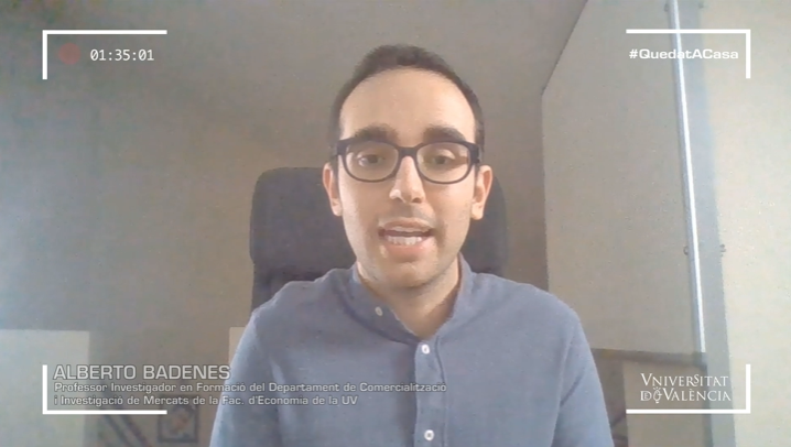 El investigador del departamento de Comercialización e Investigación de Mercados de la Facultad de Economía, Alberto Badenes, analiza en un video las opciones que ofrece el marketing digital para que las empresas sigan activas en el mercado durante la pandemia mundial por el Covid-19.