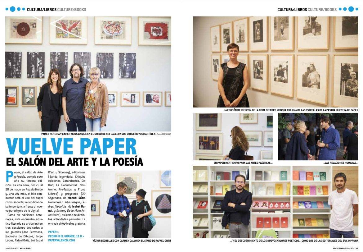Por supues­to, tam­bién repa­sa­mos todo lo que trae­rá la pró­xi­ma edi­ción de Paper Valen­cia, el salón de arte y poe­sía que cum­ple este año su ter­ce­ra edi­ción. La cita será, del 25 al 28 de mayo en Ruza­faS­tu­dio y, una vez más, el hilo con­duc­tor será el uso del papel como sopor­te, rei­vin­di­can­do su impor­tan­cia fren­te al nue­vo para­dig­ma de lo digi­tal.