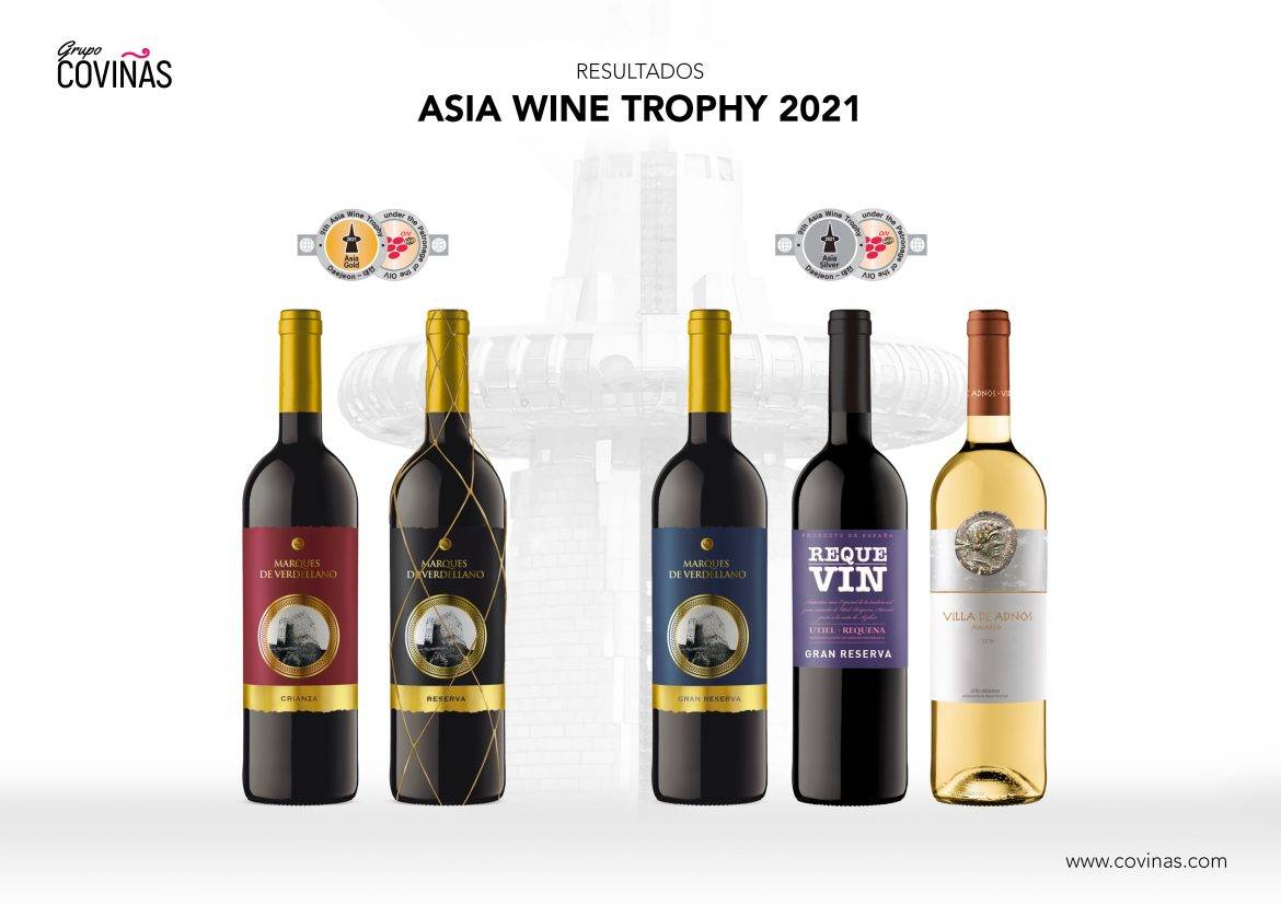 Los vinos de Covi­ñas han sido galar­do­na­dos con 5 meda­llas en el con­cur­so más gran­de de Asia, el Asia Wine Trophy. Con más de 4.300 vinos regis­tra­dos cada año, es el úni­co con­cur­so que cuen­ta con el patro­ci­nio de la OIV en Asia, en el que más de 140 jura­dos inter­na­cio­na­les catan y eva­lúan los vinos pro­ce­den­tes de más de 34 paí­ses. Ade­más, en cada edi­ción, exper­tos pro­ce­den­tes de los prin­ci­pa­les paí­ses impor­ta­do­res de Asia des­ta­can la cali­dad y buen hacer de esta com­pe­ti­ción eno­ló­gi­ca.