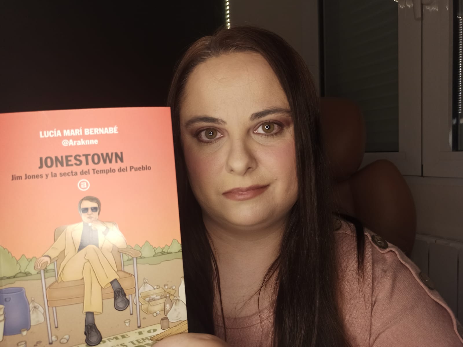 Durante la pandemia, cumpliendo con su obligación de aburrirse, Lucía Marí Bernabé (@araknne) decidió aprovechar el tiempo hablando sobre sucesos en Twitter. Y como parece que a la gente le gustó, pues dio el salto a Youtube, a Applepodcast o Spotify y fue sumando seguidores. Ahora, además de colaboradora de RNE, ha debutado como escritora con Jonestown. Jim Jones y la secta del Templo del Pueblo (Akal).