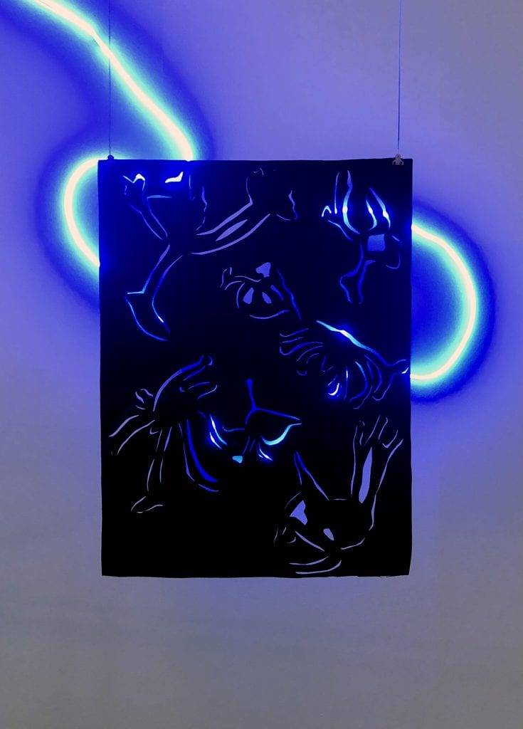 Rosana Antolí trabaja con el ritmo y el fluir, la repetición, los bucles eternos y las mareas de la coreografía social. En esta exposición en CentroCentro se adentra en un nuevo territorio y se sumerge en una solución acuosa, como un estado mental, donde transporta al público; una experiencia multidimensional e inmersiva que ha sido creada entretejiendo elementos escultóricos, dibujo, vídeo y performance en vivo. El punto de partida de la exposición es la pregunta “¿Qué podemos llegar a entender imaginando el mundo desde un punto de vista fluido?”, planteada por la autora Terry Tempest Williams en el libro Jellies: Living Art.