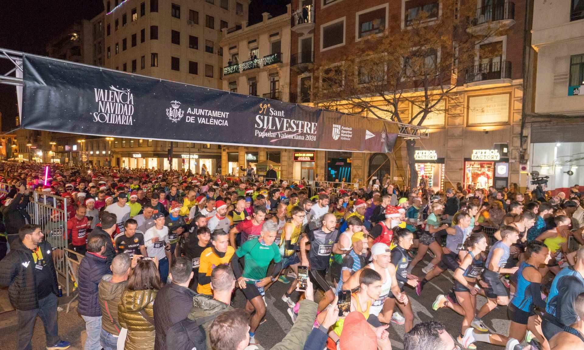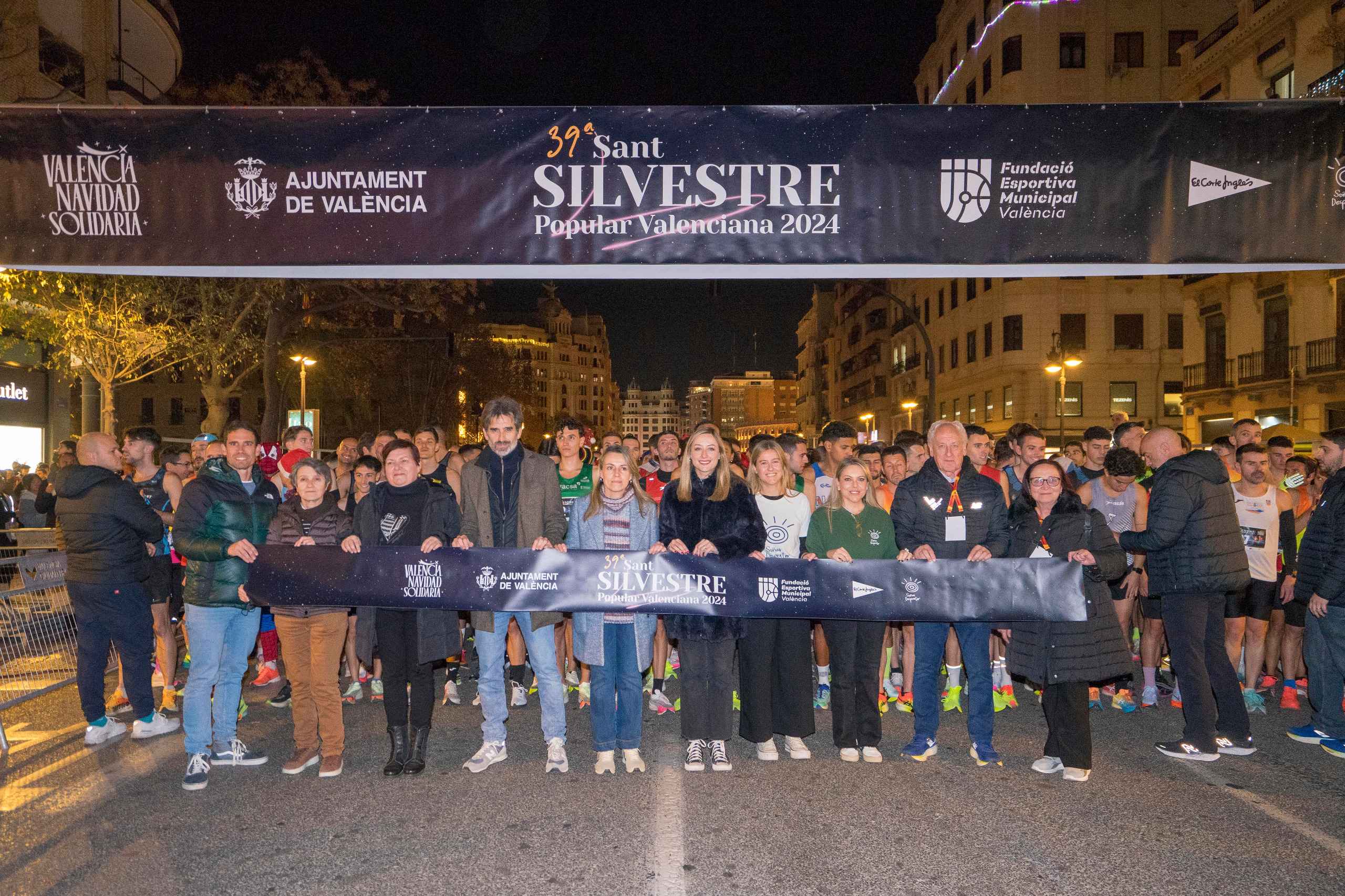 Un año más, y ya son 39 ediciones, se ha celebrado en el centro de la ciudad la tradicional San Silvestre Popular de Valencia. La carrera más divertida, lúdica y festiva del calendario, que ha servido como la mejor forma de finalizar el 2024 para 15.000 ‘runners’ valencianos. A las 20:00 se ha dado el pistoletazo de salida a la prueba con la presencia de Rocío Gil, concejala de Deportes del Ayuntamiento de Valencia, junto a sus compañeros en el equipo de gobierno de la corporación, Julia Climent, tercera teniente de alcalde y titular del Área de Patrimonio, Recursos Humanos y Técnicos y Participación, y José Luis Moreno, titular del Área de Fiestas y Tradiciones y Cultura. Junto a ellos, representantes de El Corte Inglés y de la entidad solidaria Soñar Despierto.