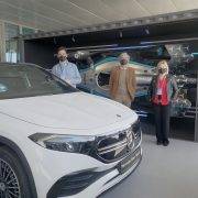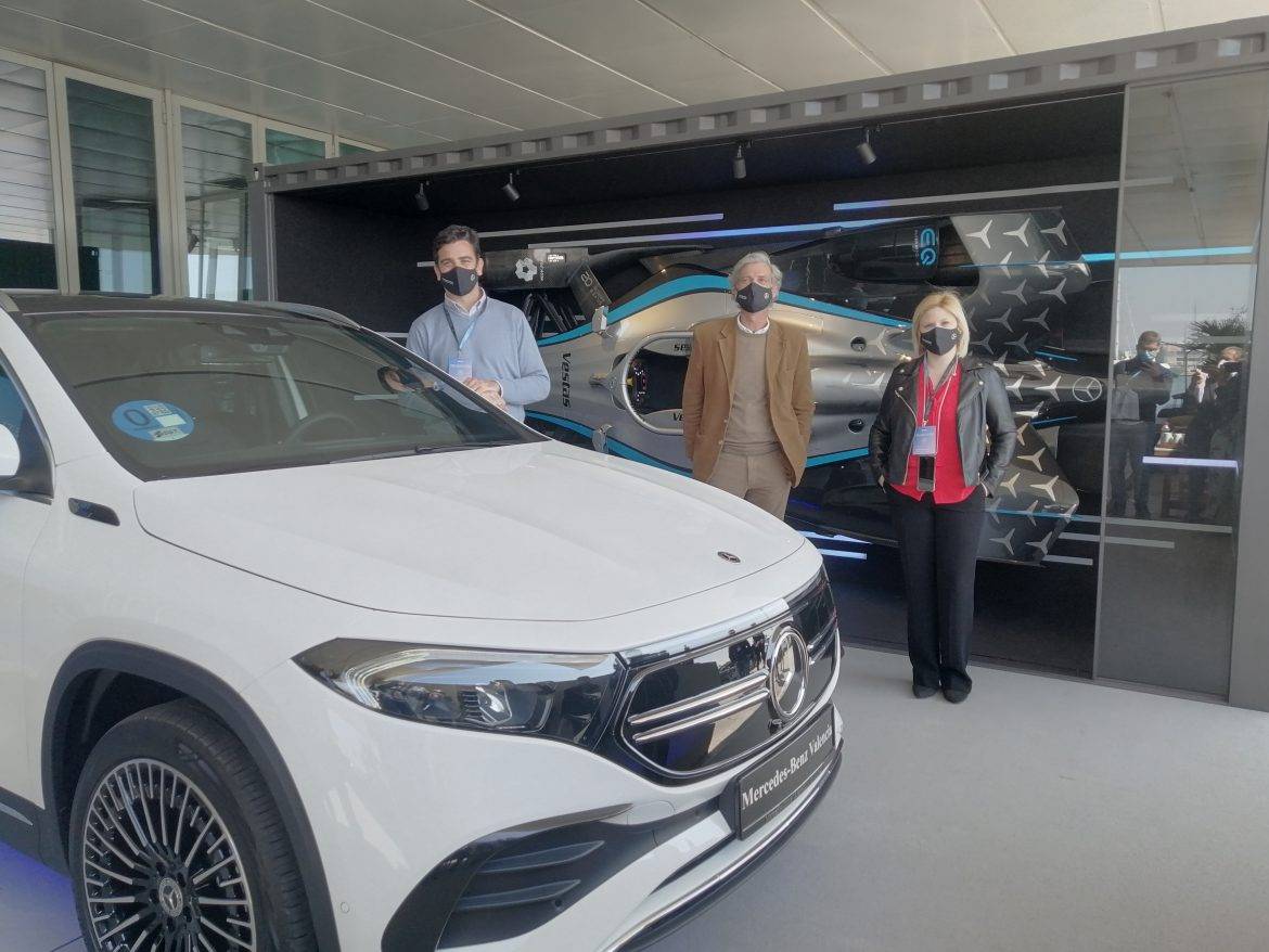Inés Sopeña, Gerente de marketing de Mercedes-Benz Retail y Alberto Rivas, Gerente de Ventas de Turismos Nuevos en Mercedes-Benz Valencia, han presentado en La Marina Real el nuevo modelo 100% eléctrico de la marca alemana, el EQA.