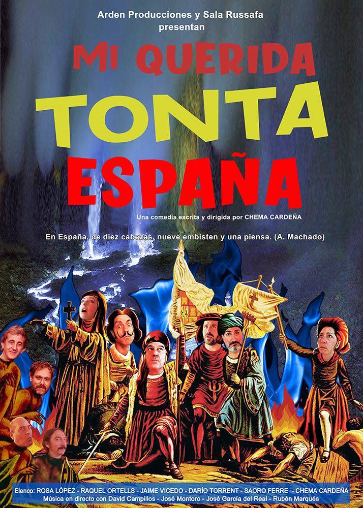 Mi querida tonta España es un nuevo montaje fruto de uno de los cruces quizá más inesperados: La Divina comedia, de Dante, con Los episodios nacionales, de Benito Pérez Galdós. Un cóctel totalmente explosivo cuando se añade el tono de farsa, caricaturesco y deslenguado que Cardeña aplica a estas comedias, con las que busca exorcizar las tensiones acumuladas a lo largo del año, pero sin dejar de hacer pensar a la audiencia.