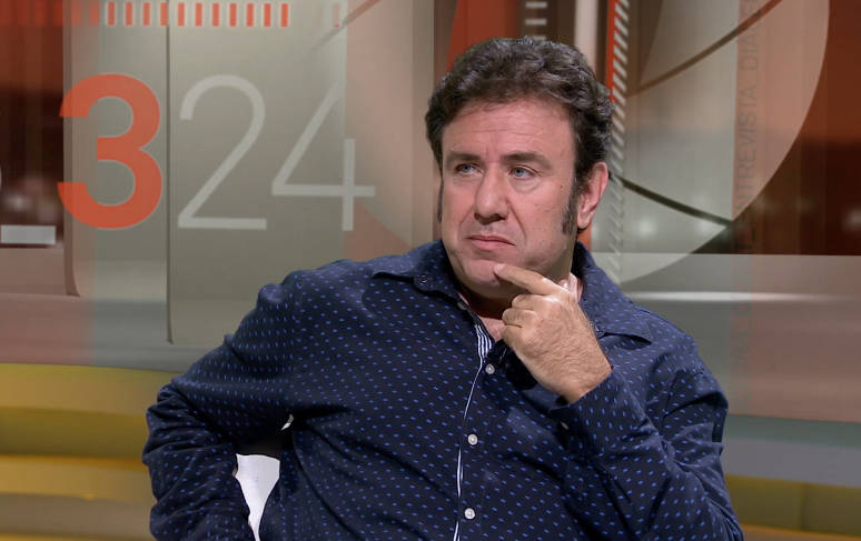El escri­tor Rafael Lahuer­ta, duran­te una entre­vis­ta en tele­vi­sión.