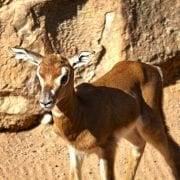 La gacela Mhorr (Nanger dama mhorr) es una hermosa gacela que se distingue por su blanco pelaje cubierto de un color castaño rojizo en su dorso y sus característicos cuernos en forma de “s”. También conocida como “dama” por la elegancia de sus esbeltas patas y su largo cuello. Es la mayor de las gacelas del mundo y desgraciadamente una de las especies que se extinguió en su hábitat y que sobrevive en el planeta gracias a un español, el profesor José Antonio Valverde, que rescató del Sahara un grupo de 11 ejemplares del que descienden todos los que hoy se encuentran en diferentes instituciones conservacionistas entre las que destaca Bioparc Valencia.