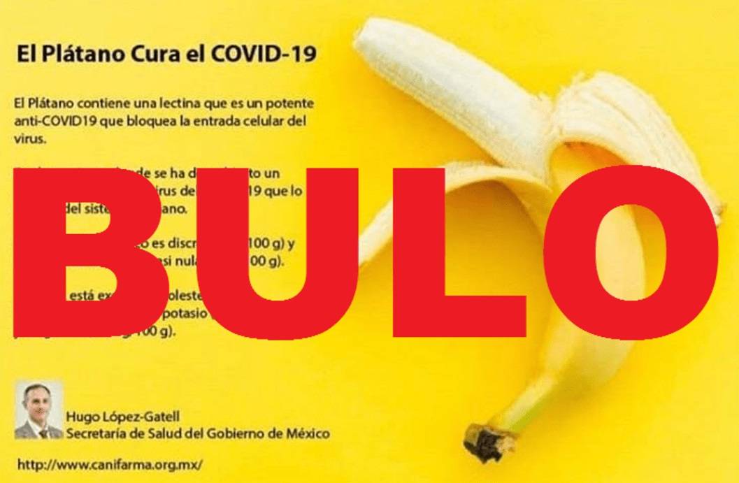Nos habéis consultado mucho por una imagen que afirma que “el plátano cura el COVID-19” porque supuestamente contiene una lectina “que es un potente anti-COVID19 que bloquea la entrada celular del virus” y potasio “donde se ha descubierto un antígeno resistente al virus del COVID-19 que lo elimina del sistema humano”. Es un bulo.