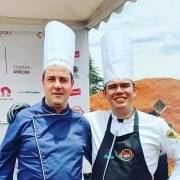 Jorge Padro, chef del restaurante valenciano Nou Racó, y Cristian Arroba, chef y propietario del restaurante Maitane de Ecuador (ganador del concurso internacional de la mejor Paella de Ecuador en el último World Paella Day) se reencuentran en Valencia para elaborar un menú sorprendente en el que reinventan clásicos de la cocina valenciana con toques y guiños a la gastronomía latina ecuatoriana. Así, en la mesa se podrá degustar una ensalada valenciana en texturas aliñada a la vinagreta de cacao mashpi y tomate del árbol; ceviche de corvina del mediterráneo con naranjilla, airbag de choclo y un toque de sal prieta; empanada de plátano verde con titaina del cabañal; paella de pato, anguila y rebollones (plato versionado del arroz ganador del concurso de la mejor paella de Quito) y milhojas de queso de cassoleta con higos confitados, ishpingo y panela.