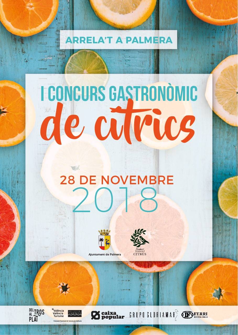El Ayuntamiento de Palmera ha convocado el I Concurso Gastronómico de Cítricos en el Plato y en la Mesa para cocineros profesionales. El objetivo principal de este concurso es fomentar el uso del amplio abanico de variedades de cítricos existentes en el huerto botánico de la Fundación Todolí Citrus, en recetas diseñadas y platos elaborados por profesionales gastronómicos.