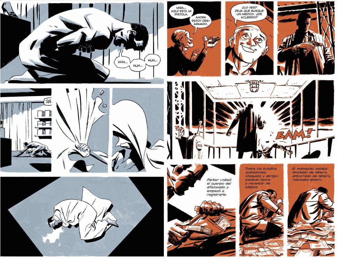 El resultado es una obra maestra sin paliativos. El estilo es 100% Cooke, pero más seco (se ve la influencia de Alex Toth y Joe Kubert) y con un uso absolutamente novedoso del color en su trayectoria. Él, alumno aventajado del colorista Matt Hollingsworth (con quien trabajó en Selina), opta en esta ocasión por un sobrio bintono (azul o naranja) que traslada mejor al cómic la textura seca de las novelas de Stark.