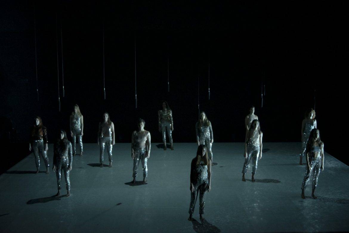 La pieza escénica está radicalmente arraigada en la presencia de sus doce bailarinas, cuyos cuerpos no se desplazan. A partir de sus columnas agitadas en múltiples direcciones y de sus brazos lanzados con violencia y descontrol, se despliega una poética de cuerpos que resisten de pie. El elenco permanece, mientras sus cuerpos son atravesados por diversas fuerzas e intensidades. El resultado es un cuerpo colectivo de mujeres que presenta su resiliencia ancestral como forma de estar en el mundo.