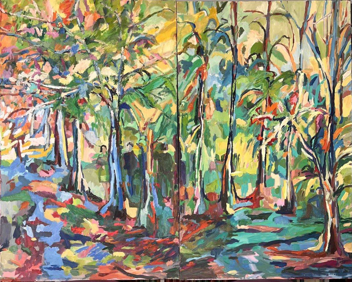 Queca Domínguez (Madrid, 1955) es la autora de la exposición Bosques y más bosques, que podrán verse hasta el próximo 31 de enero en la galería Alba Cabrera Art Contemporani. La muestra está compuesta por diez obras pictóricas de óleo sobre lienzo en las que la autora reinterpreta el mundo de la naturaleza salvaje con su particular manera de ver la realidad y partiendo de distintos bosques que le han influido.