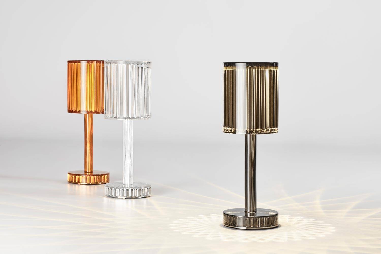 Autonomía, graduación de la luz y la posibilidad de elegir el color que se proyecta en cada momento, hacen de Gatsby una pieza perfectamente resuelta desde el punto de vista técnico. A través de los patrones simétricos que dibuja la luz cuando proyecta las formas geométricas, la lámpara Gatsby es idónea para crear atmósferas sorprendentes.