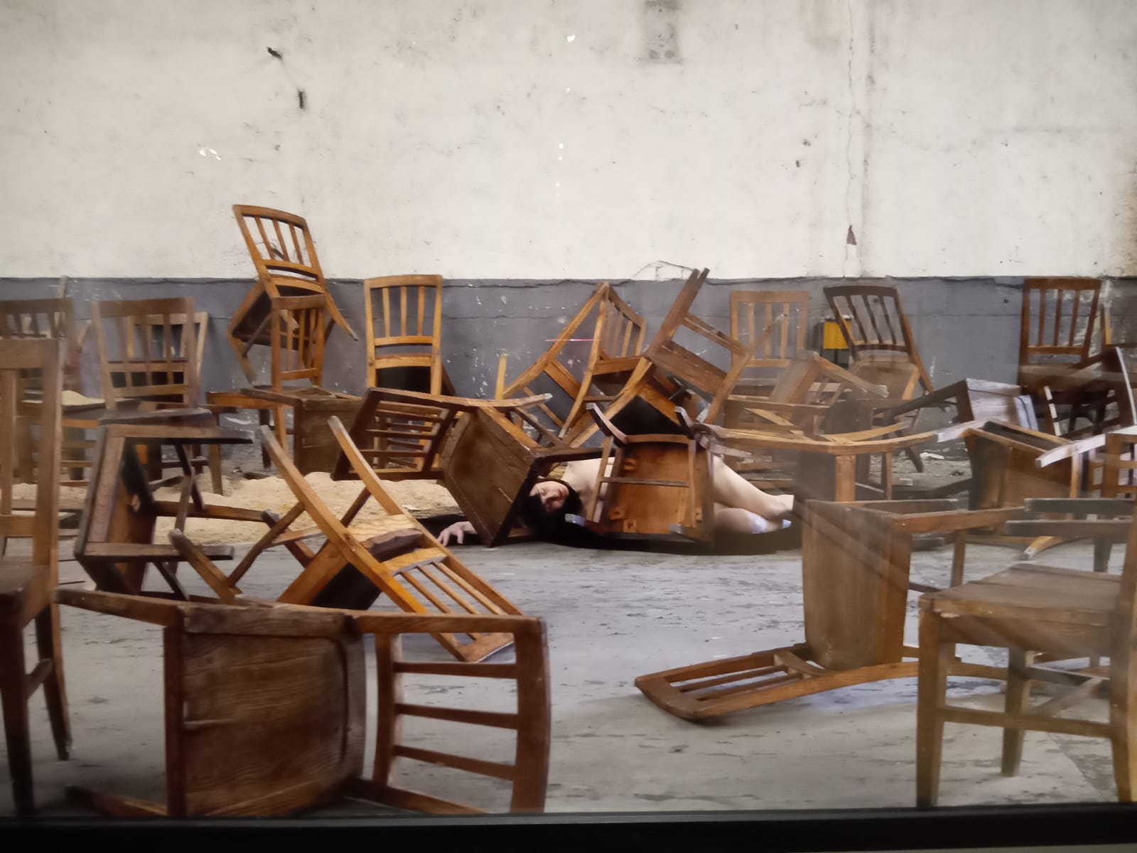 Comienza a notarse la rabia de las autoras en esta sala que prosigue con una foto de Ana Teresa Ortega: un patio desolado de San Miguel de los Reyes, convento que hoy alberga nuestra genial biblioteca pero que fue prisión y sufrimiento en los años 40 como es bien sabido. Es una sala muy politizada porque Nuria Güell ha montado un vídeo con una performance muy extraña en la que una mujer pasea por una ciudad sueca. Te enteras de la asombrosa noticia de que en el año 2013 el Gobierno sueco impulsó el llamado sistema REVA; se trataba de bonificar a los policías que cazaran inmigrantes irregulares por la calle (¡!).