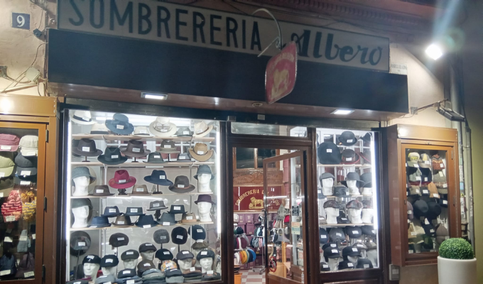 Da gusto ver algo así cuando la mayoría de los lugares que recuerdo en mis calles preferidas del casco antiguo caen unas tras otras porque sus tenderos no pueden hacer frente a la draconiana subida de alquileres que imponen los dueños de los bajos. Tiendas hermosas ahora convertidas en abrevaderos para turistas. Y sin embargo algunas resisten contra todo pronóstico, entre ellas la Sombrerería Albero, frente a la Llotja con su elegante escaparate de sombreros Borsalino o las Bodegas Baviera en la calle Corretgeria.