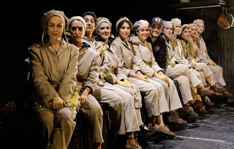 Las actri­ces con el direc­tor de la obra, Ser­gio Peris-Men­che­ta. Foto: Bár­ba­ra Sán­chez Palo­me­ro.