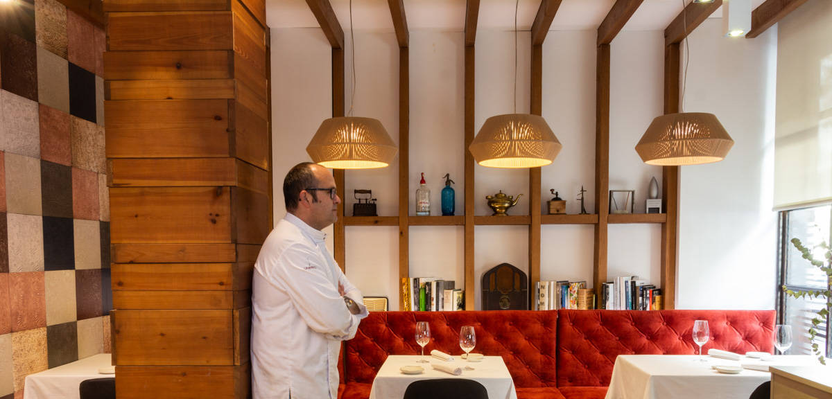 La reforma ha corrido a cargo de Eme-Dos, estudio de interiorismo que se encarga habitualmente de los proyectos de Patiño, por lo que que el resultado se adapta a la identidad de la casa. Nada en la sala de Saiti queda al azar: ni los manteles largos que cuelgan hasta el suelo, ni la vajilla de cerámica donde cada pieza es distinta a la anterior. El esmero por el detalle es una cuestión de compromiso con el trabajo y, sobre todo, un camino para perseguir la satisfacción del comensal.
