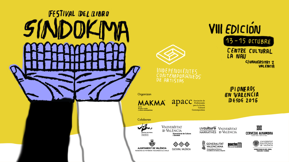 Sindokma contará con la presencia de medio centenar de autores y artistas que nutren el cronograma de actividades de las tres jornadas de un festival cuyo cartel es obra de Irma Arribas. Su autora lo explica así: «La idea/imaginario de las manos abiertas (como libro referido a la mano que escribe, a la mano que recibe, a la vida) propone un juego semiótico en el que el autor/a escribe un texto (las manos abiertas del que escribe) que parte de su imaginario, pero que ofrece al público».