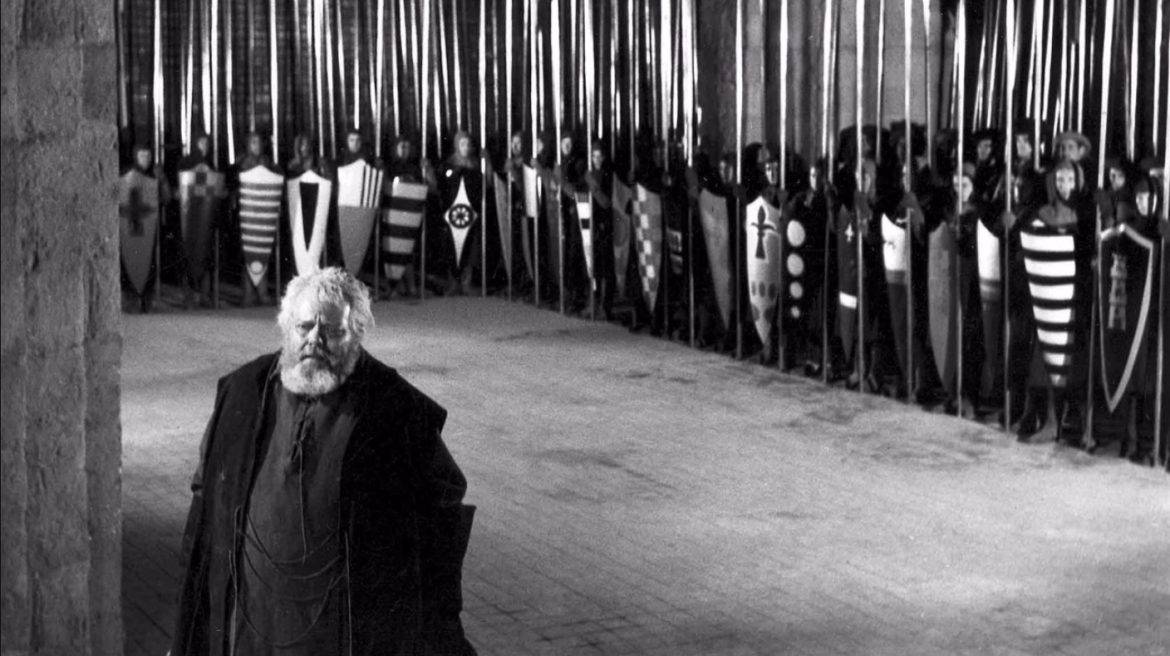 «Una hermosa película Campanadas a medianoche», comentó Conejero. Le respondí: «La he visto cuatro veces y sigue emocionándome la penúltima secuencia, en la que Falstaff va a saludar al nuevo rey, Enrique V, del que espera grandes favores porque fue amigo suyo de francachelas cuando el ahora monarca era príncipe de Gales. El nuevo y joven rey le dice: ‘Yo ya no soy el que era, cuando vuelva a serlo regresa a mí…’» Empecé a balbucear, porque no me acordaba del todo bien de las palabras de Enrique V. Manuel Ángel Conejero me atajó, al notar mi impreciso recordatorio, y tomó la iniciativa, citando con exactitud las del joven rey ante su ex compañero de robos y trastadas, el obeso y anciano Falstaff: «No te conozco, viejo. Arrodíllate y reza. Qué mal sientan los cabellos blancos a un viejo bufón de costumbres disolutas…».
