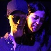 Tolo Perelló, músico y compositor mallorquín, creador del universo sonoro tridimensional de la pieza en directo y Paula Bares, actriz y dramaturga valenciana que escribe y protagoniza la pieza.