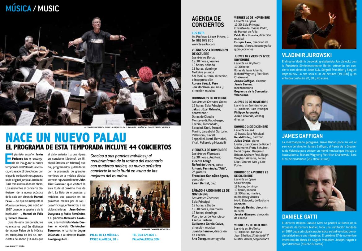 Por lo que respecta a las páginas de Cultura, en Valencia City destacamos la reapertura del Palau de la Música con 44 conciertos programados, las obras de teatro del momento como El Cid y Réquiem por un campesino Español, o el nuevo libro de poesía del periodista Sergio Carbó Sanfeliu con más de 40 poemas que nacen a pie de calle y de experiencia vital.