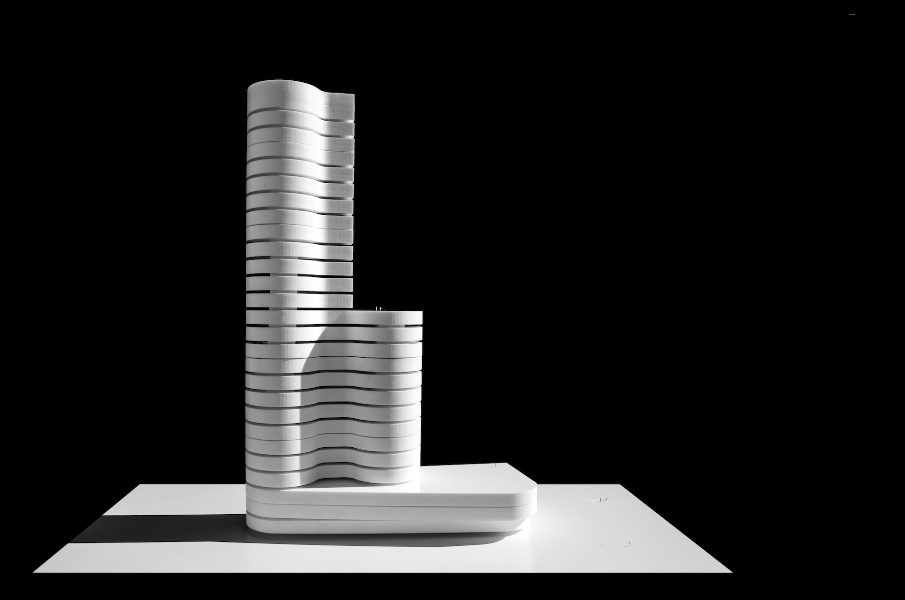 El edificio se configura como un Kouros que custodia el acceso a la ciudad. Muestra en su composición de fachada el paso del tiempo y como si se tratase de distintos estratos, se reflejan las alturas que han definido los distintos tipos de ciudad.