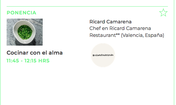 Jun­to a la pre­sen­cia en el cer­ta­men de gran­des coci­ne­ros crea­ti­vos y chefs de la Comu­ni­tat Valen­cia­na como Ricard Cama­re­na, o Qui­que Dacos­ta, tam­bién par­ti­ci­pa­rán jóve­nes pro­fe­sio­na­les como Ale­jan­dra Herra­dor y Enma­nuel Car­luc­ci (Res­tau­ran­te Ata­la­ya de Alcos­se­bre, Cas­te­llón). María José Mar­tí­nez y Juan­jo Soria, (Res­tau­ran­te Lien­zo, Valen­cia) y Cari­to Lou­re­nço y Ger­mán Carri­zo, (Fie­rro, Valen­cia).