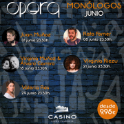 Después de la estelar actuación de Juan Muñoz, el popular humorista que formaba parte del inolvidable dúo cómico Cruz y Raya, el pasado sábado día 1, la sala Ópera de Casino Cirsa Valencia presenta para este mes un amplio y variado cartel para los fines de semana que incluye a varios de los mejores monologuistas del país como Rafa Forner, Álvaro Carrero, Virginia Muñoz, Virginia Riezu y Valeria Ros.