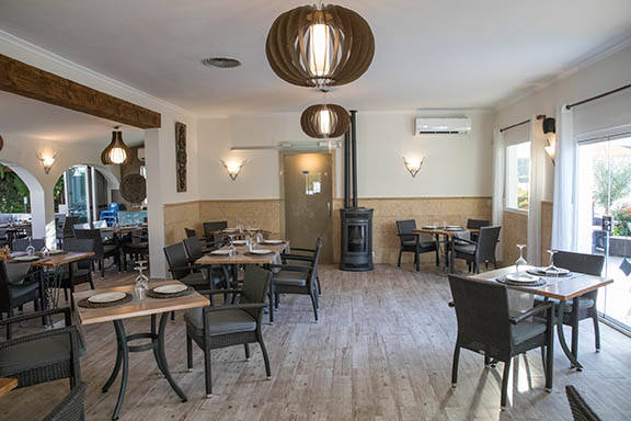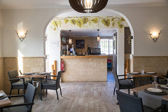Entra­da al res­tau­ran­te, en la tra­ve­sía de Can­sa­la­des.
